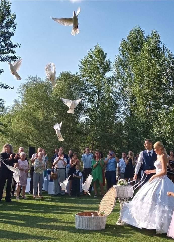Amikor a fehér galambok elrepülnek, hírnökként viszik azt a békét, szeretetet és összetartozást, amit az esküvő alkalmával ünneplünk.