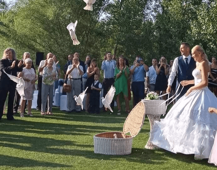 Amikor a fehér galambok elrepülnek, hírnökként viszik azt a békét, szeretetet és összetartozást, amit az esküvő alkalmával ünneplünk.